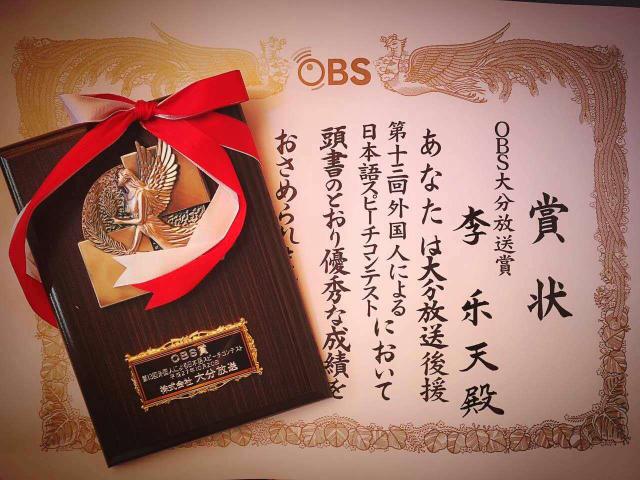 2015年10月20日,我校赴日留学生李乐天荣获OBS株式会社大分放送电视台举办的第13届外国人日语辩论赛银奖。就在前不久,李乐天同学凭借优异的成绩荣获日本大分县政府奖学金36万日元,约合人民币18000元。此次再获佳绩,再一次为我校争光添彩。