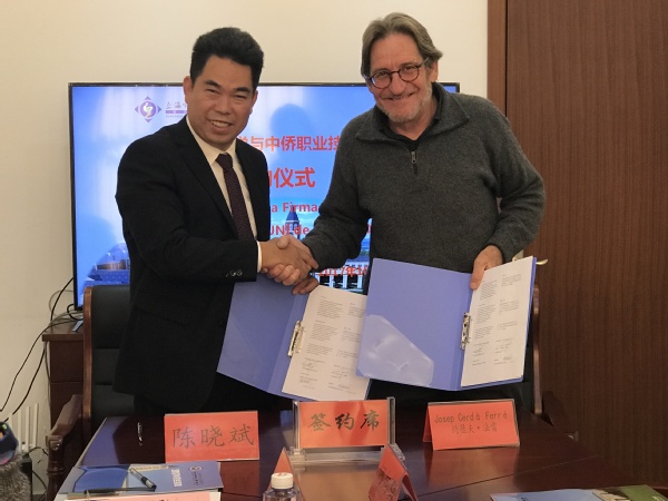 签约仪式上,陈晓斌校长向约瑟夫院长一行介绍了我校的历史沿革、办学特色、育人理念及未来发展规划等方面的情况。约瑟夫院长介绍了西班牙教育体系及巴塞罗那大学教育管理体制。双方在相互了解、相互信任的基础上,签署了西班牙巴塞罗那大学与上海中侨职业技术学院合作设立巴塞罗那大学“当代空间设置”本校硕士学位合作协议。此次签约,标志着两校正式建立长期稳固合作关系,双方将积极组织开展与社会和文化相关的硕士学位课程、师资共建项目、两国文化交流、合作办学、短期访学、研讨会等活动。