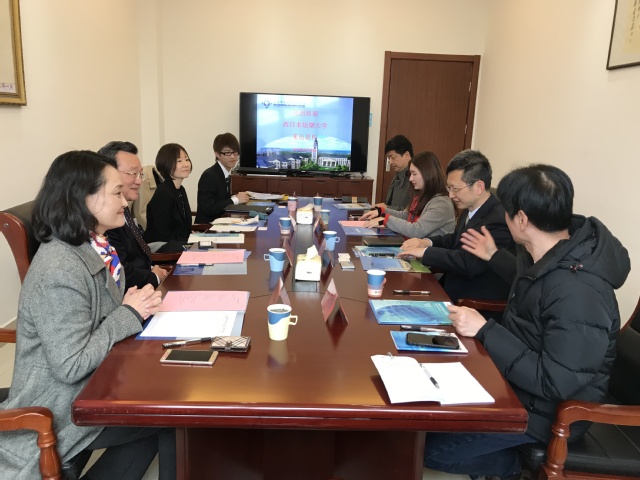 3月25日上午,西日本短期大学事务局局长真子一博、副别科长竹之内美树香、国际交流留学生支援室蒋旻祺及其中国办事处负责人朱正琪老师一行来访我校。副校长罗宁、合作交流处处长王凌、外国语学院副院长王亨良、艺术学院常务副院长侯雨豪等接待了来访客人。