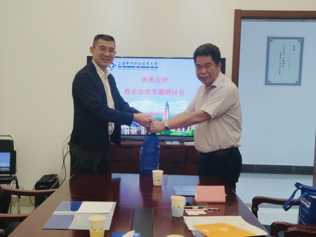 陈晓斌校长对来宾表示热烈的欢迎,并对学校的现状及未来发展方向做了介绍,同时就双方的合作切入点给出建议,要积极学习美团与深圳职业技术学院的合作模式,根据我校实际情况,探索适合我校发展的合作模式。随着越来越多的新职业的诞生,作为上海目前唯一的职业本科试点学校,更要突破自我、不断探索办学新模式,将专业建在产业链上,尤其是新兴产业,要向美团点评这样快速发展成行业领头羊的企业学习。建议首先将美团大学的部分课程纳入我校选修课平台内;其次与学校创业学院搭建虚拟平台,提供创业方面线上和线下的课程;远期目标可以共建美团数字化生活服务学院,共建专业、共同编写教材、申请1+X证书等。