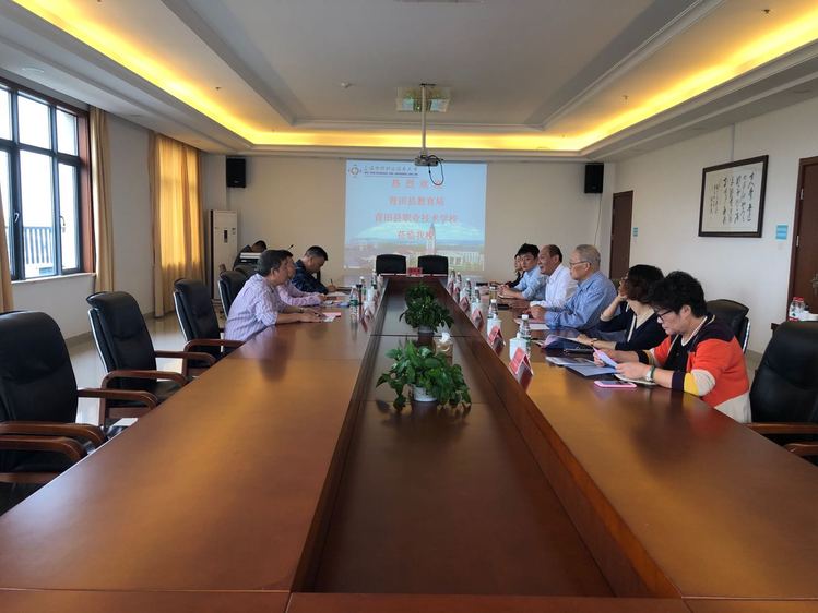 10月15日上午9时,浙江省青田县教育局副局长夏国军、青田县教育科科长艾永斌、青田县教育局人事科科长叶永平、青田县职业技术学校校长项建微一行参访我校。学校党委书记平杰教授、常务副校长寇新建教授、校办主任钱波、教务处处长王莉、招生办公室主任周珍珠、合作交流处副处长路宏出席并接待。