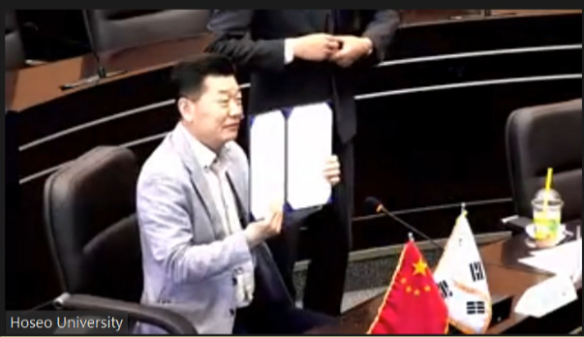 6月3日上午9点30分(韩国时间10点30分),上海中侨职业技术大学与韩国湖西大学通过远程视频会议形式举行合作签约仪式。上海中侨职业技术大学校长霍佳震、副校长刘淑芸、国际交流处副处长胡雅楠、国际交流处职员武怡冰、韩国湖西大学本常务副校长朴雪豪、国际交流与合作处副处长金是用、国际交流与合作处部长崔龙善、留学生商谈中心主任陈国华教授、国际交流与合作处中国业务负责人崔丰硕、上海联络处代表崔光彬等出席了会议。签约仪式由副校长刘淑芸主持。