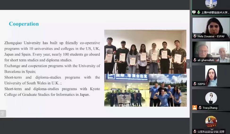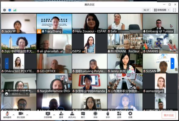 6月29日,2022年中非国际交流合作研讨会暨高职院校国际合作洽谈会以线上方式开展,本次研讨会由亚非国际发展联盟(GDAAA)举办。亚非国际发展联盟主席Nadhir Hamada博士、秘书长Mhalla Mohamed Bechir先生、亚太区主席Tracy Zhang、突尼斯驻中国大使馆Chadi Blout先生、突尼斯前高等教育署主任Ali Gharsallah教授、突尼斯大学理学院Tunis Manar教授、来自中国、非洲等几十所高等教育机构、院校参会。我校受邀出席,参会人员有:副校长刘淑芸、国际交流处副主任胡雅楠、国际交流处职员武怡冰。