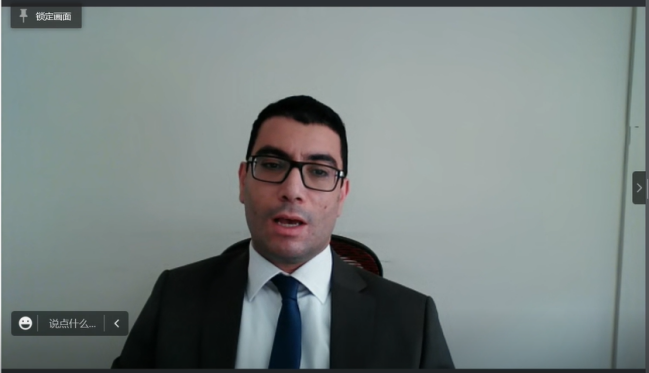 随后,突尼斯驻中国大使馆Mr.Chadi Blout发言。他对于中非两地所参会的高校表示欢迎感谢并提到中国与突尼斯的国际交流合作一直在持续发展中,这是中突两国友好合作的重要标志,相信两国今后能够开展更多人文交流合作,不断增进两国友谊。
